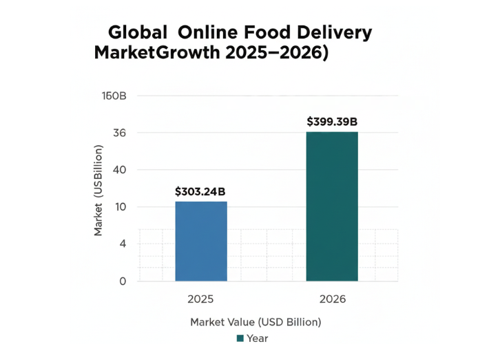 The global online food delivery market was valued at around USD 303.24 billion in 2025, and it is projected to reach about USD 339.39 billion in 2026. The Asia Pacific region is expected to lead growth due to high population, increasing smartphone use, and rapid digital adoption.