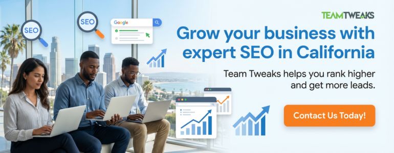 At Team Tweaks, we value clear communication and steady growth rather than quick, short-term results. Instead of chasing instant success, our SEO strategy focuses on simple and proven methods that support organic growth. As one of the best SEO companies in California, many businesses trust Team Tweaks as a reliable partner. In addition, we help brands manage and grow all aspects of their performance marketing needs.
